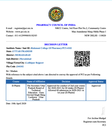 Rukmani College of Pharmacy is a well established in Uttar Pradesh, Moradabad having a high profile with interdisciplinary areas of specializations in Pharmacy.